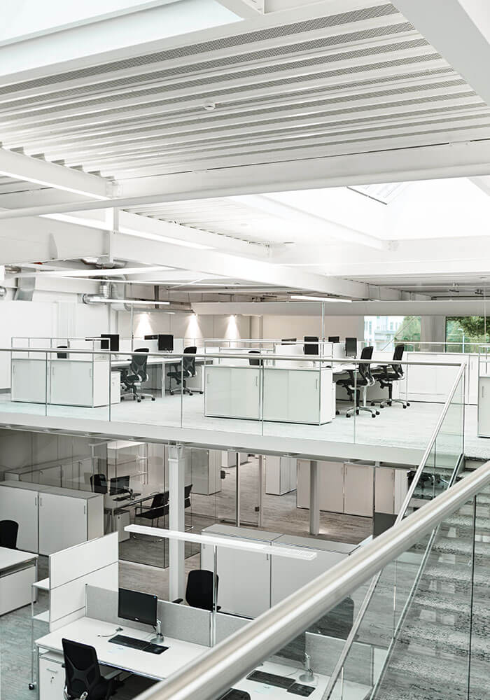 Unsere Arbeitswelt ist vielfältig. Wir öffnen Wege zur Entfaltung unserer Mitarbeitenden in jeder Facette ihres Umfeldes. Dazu gehört ein teamorientiertes Gesamtkonzept - von Besprechungsräumen, frei wählbaren Kreativbereichen bis hin zum persönlichen Arbeitsplatz. Verschaffen Sie sich einen ersten Eindruck von uns und werden Sie Teil einer inspirierenden Arbeitsatmosphäre.
